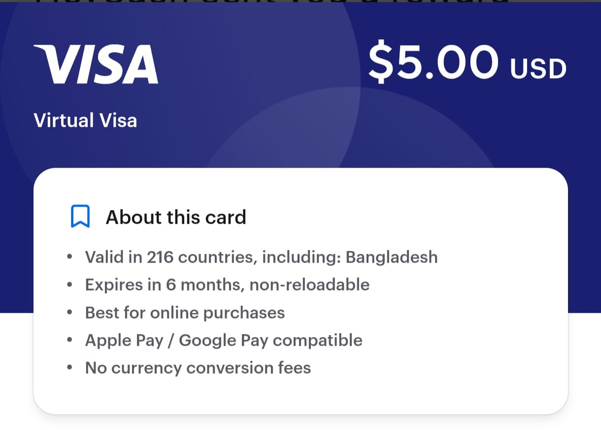 Instant Buy Virtual Visa Card Bangladesh (No KYC)